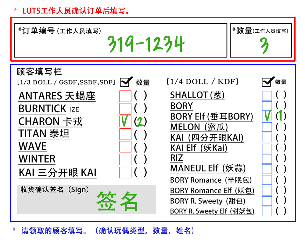 2. 请填写领取表。 (每个订单请填写一份领取表,需要签名)
